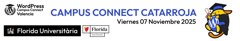 WordPress Campus Connect Catarroja está dirigido en especial a estudiantes de institutos públicos, concertados y privados (ESO y Bachillerato), centros de FP (en especial los que cursan formaciones relacionadas con informática) y profesorado de la zona sur de Valencia, zona afectada por la pasada riada de octubre de 2024.